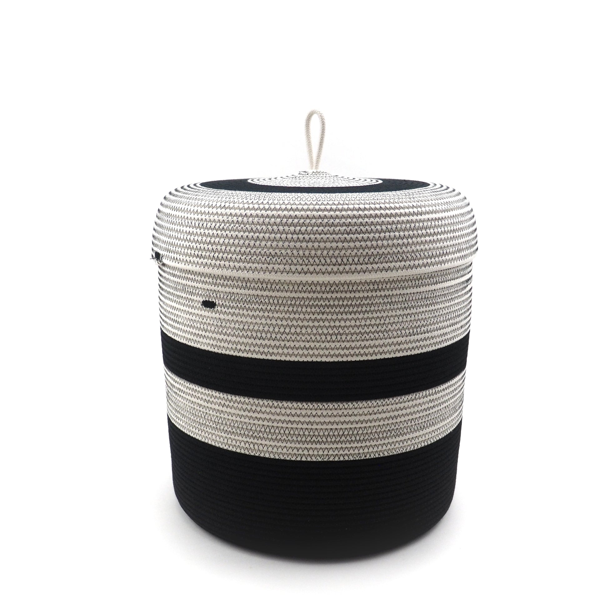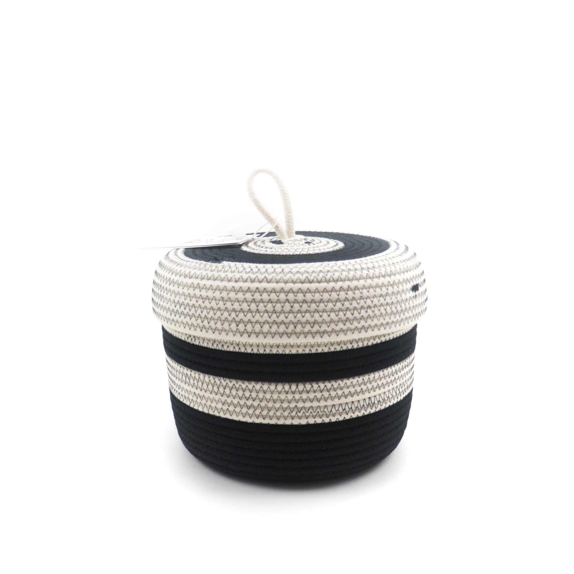 Very handy for storing all kinds of things. The lid of the basket allows you to store everything out of sight. The baskets are made of rope.