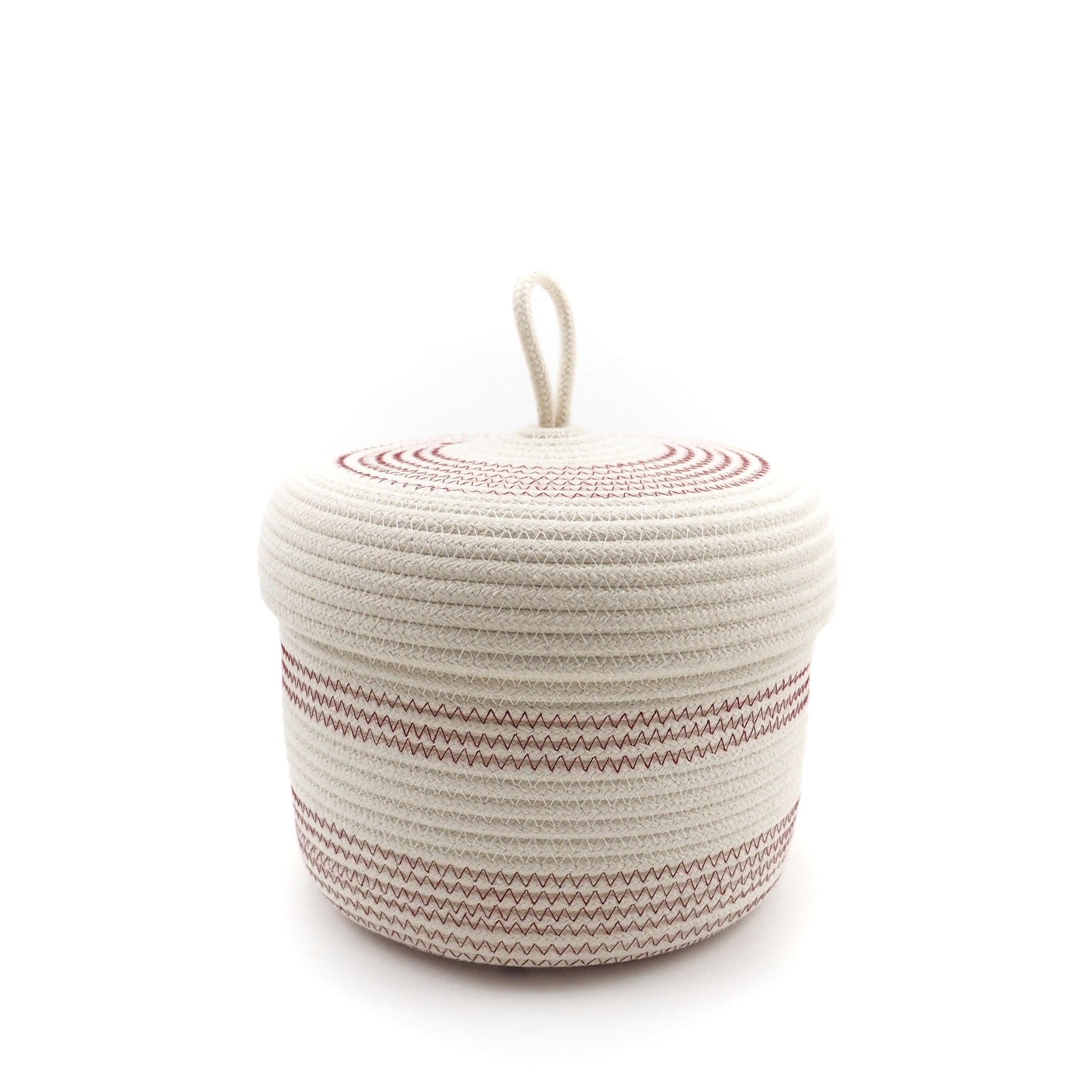 Very handy for storing all kinds of things. The lid of the basket allows you to store everything out of sight. The baskets are made of rope.
