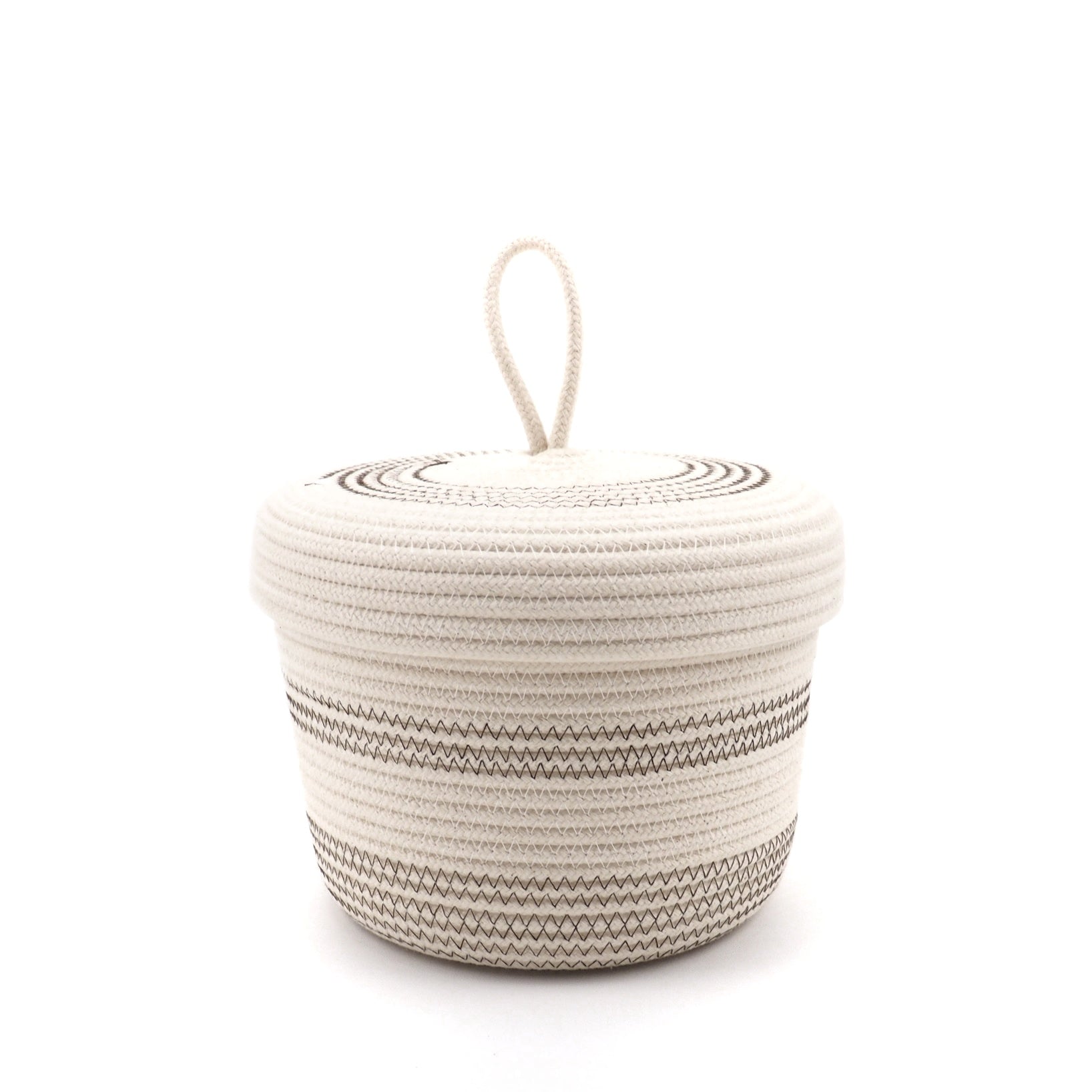 Very handy for storing all kinds of things. The lid of the basket allows you to store everything out of sight. The baskets are made of rope.
