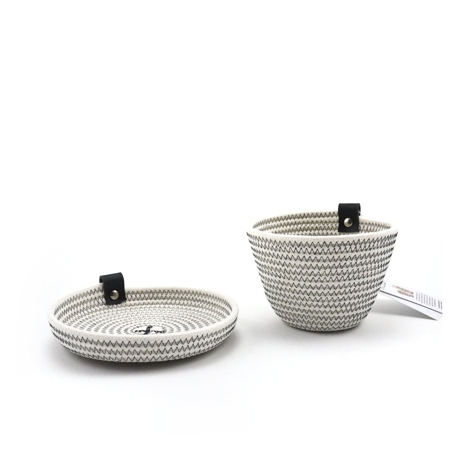 Other baskets should not be machine washed, as the leather strap and metal rivet can get damaged, and the braided rope is firmer and may lose its shape when exposed to water.