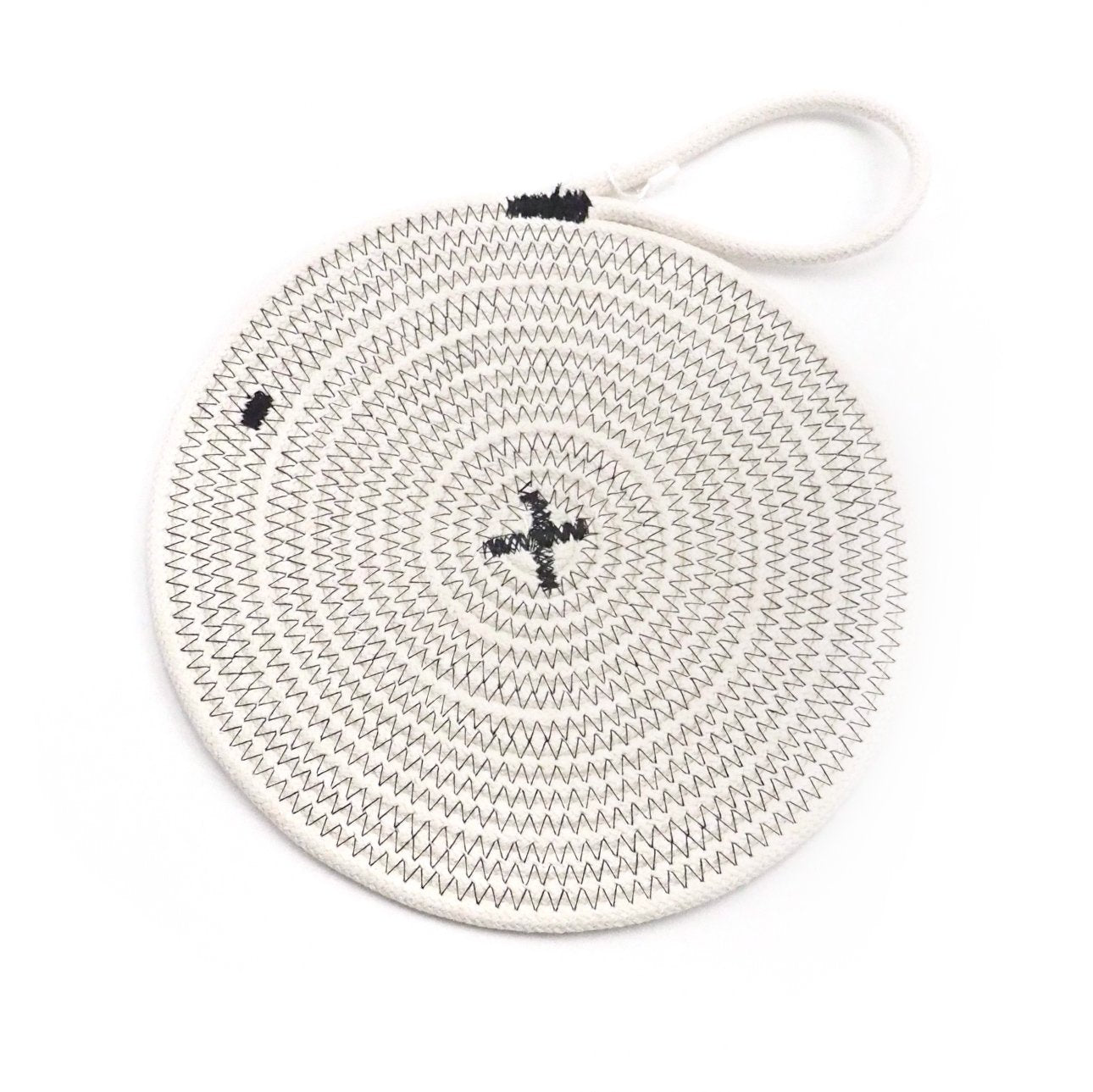 Protect your table in style with this handmade trivet, crafted from recycled cotton cords.