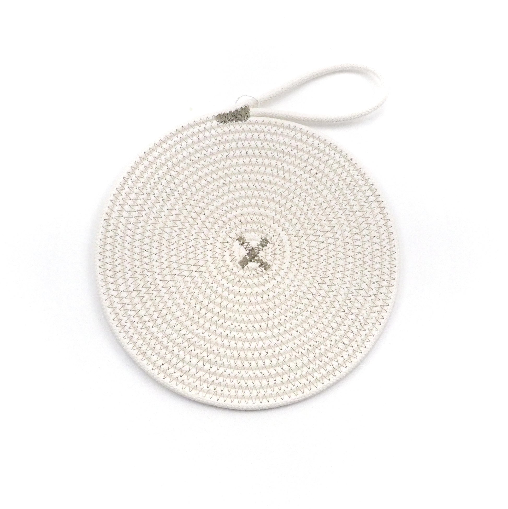 Protect your table in style with this handmade trivet, crafted from recycled cotton cords.