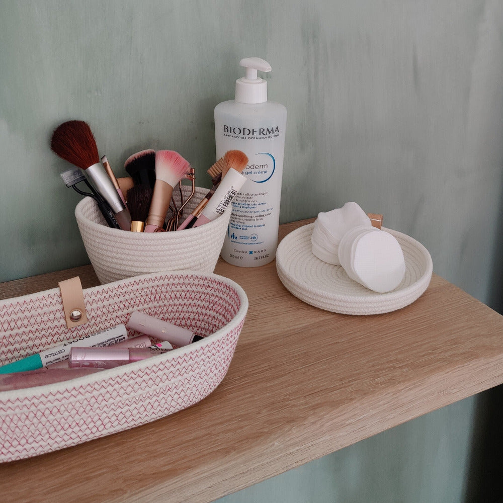 Soft Stitch baskets can be machine washed because they don’t contain leather parts or metal rivets, and the rope is knitted instead of braided, which makes it softer and more flexible.