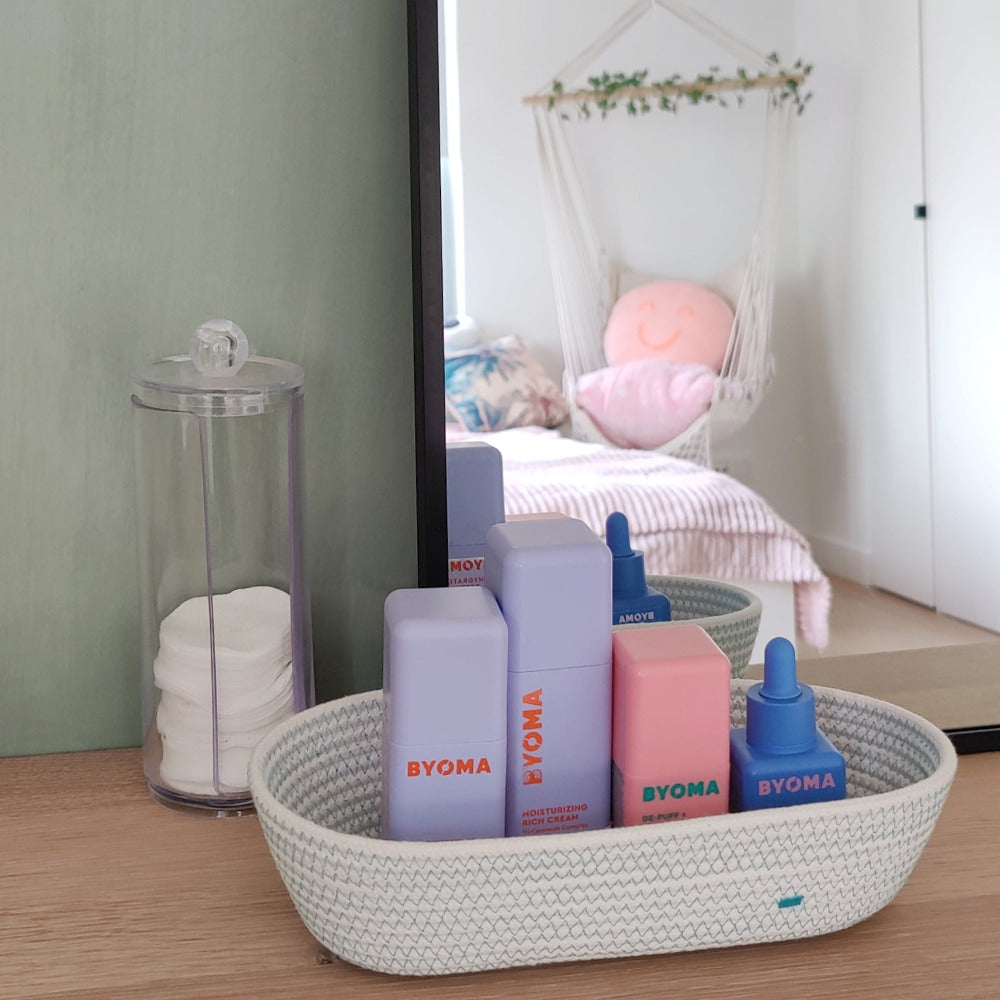 However, some items such as the tissue boxes, coasters, and Soft Stitch baskets do not have a leather strap. Their clean, seamless finish gives them a softer and more minimal look.