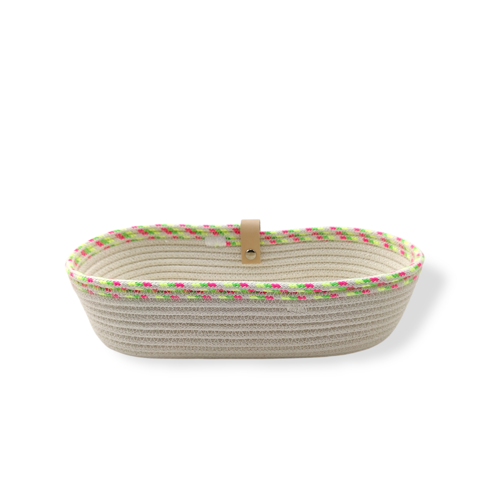 Other baskets should not be machine washed, as the leather strap and metal rivet can get damaged, and the braided rope is firmer and may lose its shape when exposed to water.